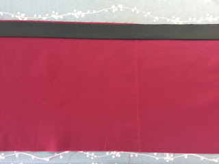 Place folded, accent strip on top with raw edges even with the top of the decorative header fabric.